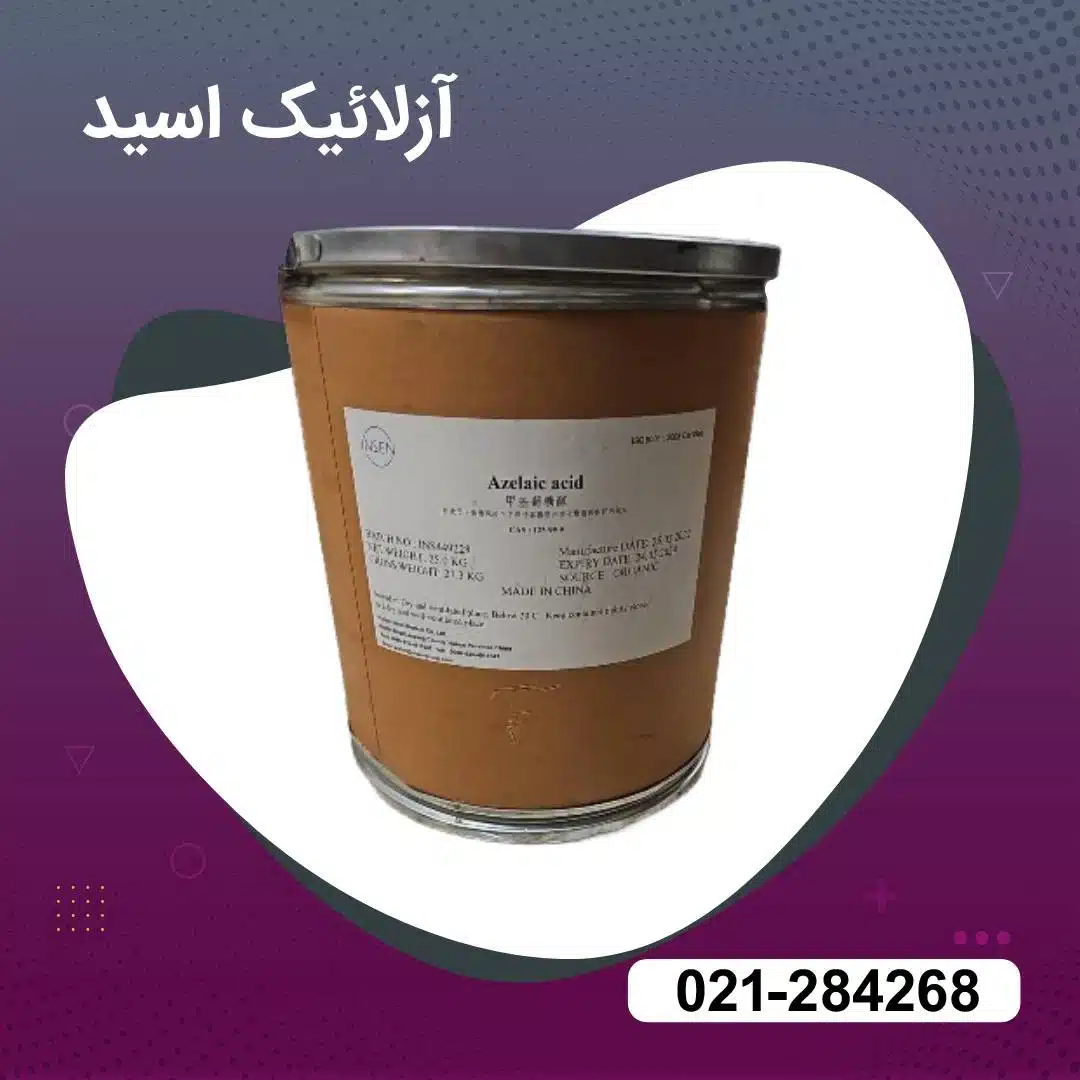 آزلائیک اسید (Azelaic Acid) یک ترکیب شیمیایی طبیعی است، که با شکل ظاهری پودر در درام های 25 کیلو گرمی بسته بندی شده است این ماده شیمیایی ساخت کشورهای چین و هند می‌باشد که با خلوص بالایی 99.9 درصدی که دارد در مواد اولیه آرایشی و بهداشتی مورد استفاده قرار می‌گیرد.  این ماده با خاصیت ضد لک برای درمان مشکلات پوستی مانند آکنه، روزاسه و ملاسما بسیار مؤثر است.