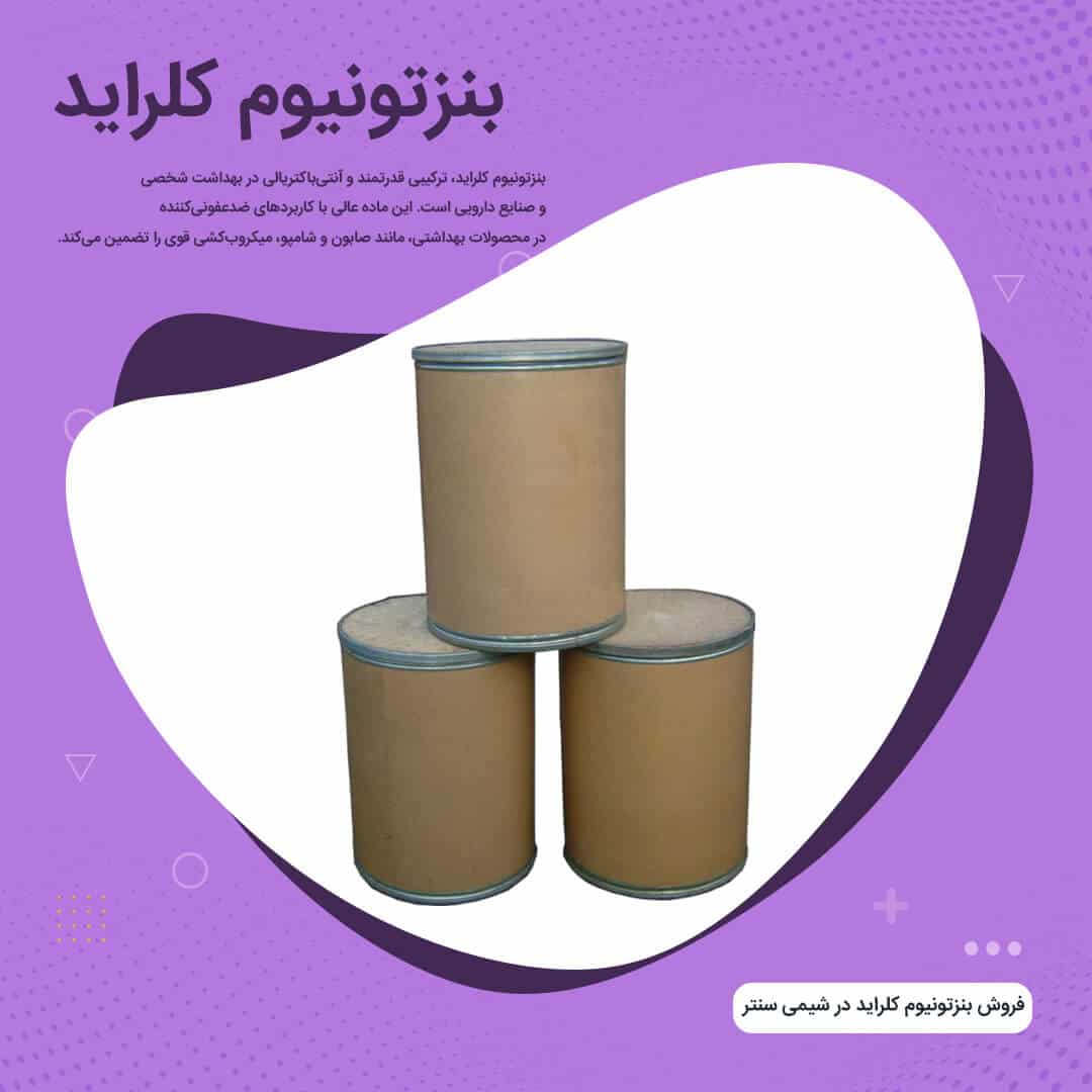 بنزتونیوم کلراید، ترکیبی قدرتمند، آنتیباکتریال و ضدعفونیکننده در بهداشت شخصی و صنایع دارویی است. جهت خرید آنلاین بنزتونیوم کلراید با شیمی سنتر در تماس باشید.