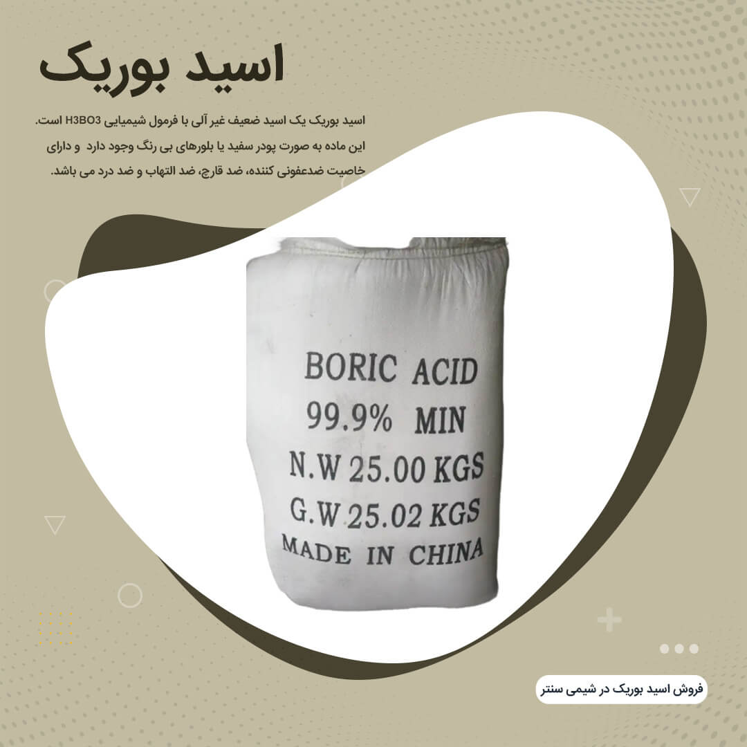 از کجا اسید بوریک بخریم؟اسید بوریک به صورت پودر سفید دارای خاصیت ضدعفونی کننده، ضد قارچ،ضد التهاب و ضد درد می باشد. جهت خرید اسید بوریک با شیمی سنتر تماس بگیرید