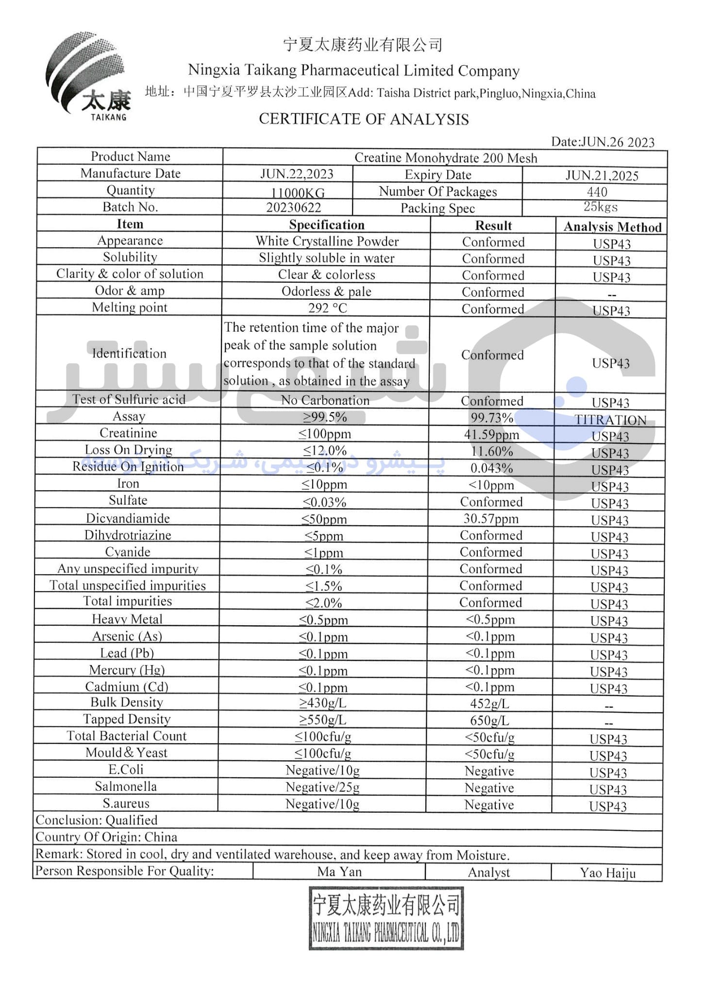 مجموعه ما واردکننده کراتین مونوهیدرات با خلوص 100% در کیسه های 25 کیلویی می باشد. جهت خرید آنلاین کراتین مونوهیدرات عمده و خرده باشیمی سنتر در تماس باشید