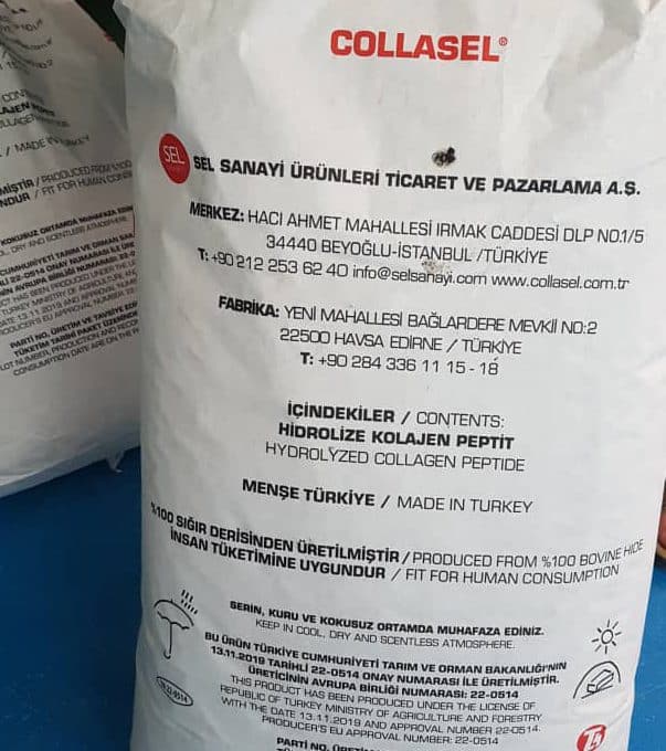 کلاژن ماهی Collasel ترکیه با خلوص ۹۹٪،گرید آرایشی و دارویی، مناسب تولید محصولات مراقبت پوست و مکملهای زیبایی،به صورت پودر کرم تا زرد روشن و بستهبندی ۲۵ کیلویی