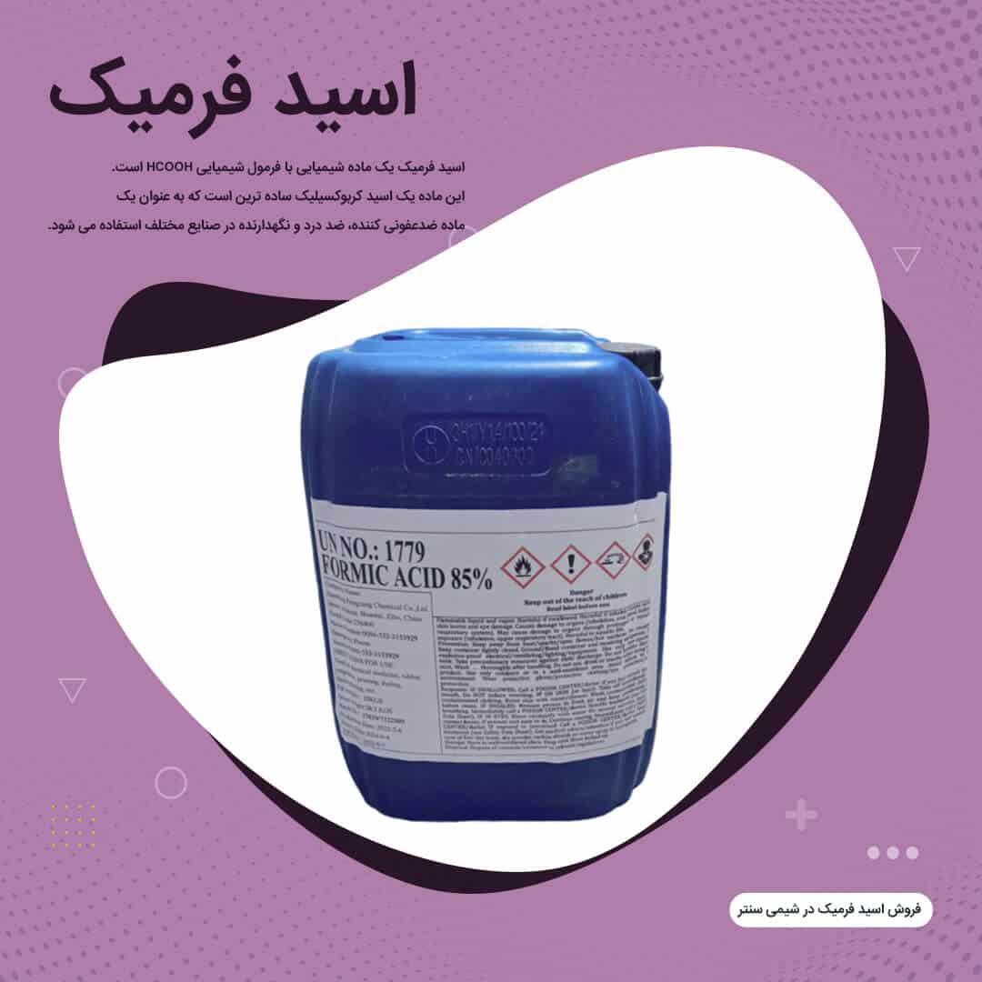 اسید فرمیک یک ماده شیمیایی است که به عنوان ضدعفونی کننده، اکسید کننده و نگهدارنده استفاده می شود. خرید با کیفیت بالای اسید فرمیک را با شیمی سنتر تجربه کنید.