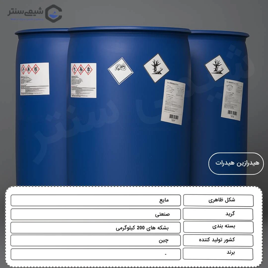 شرکت شیمی سنتر به عنوان تامین کننده معتبر مواد شیمیایی، هیدرازین هیدرات با خلوص 55% که به عنوان کاتالیست و حلال در سنتز مواد آلی در گرید صنعتی استفاده می شود را در بشکه‌های 200 کیلویی از برندهای مطرح آلمان و چین ارائه می‌دهد. .برای خرید هیدرازین هیدرات با بهترین قیمت و اصل، همین حالا با شیمی سنتر تماس بگیرید!