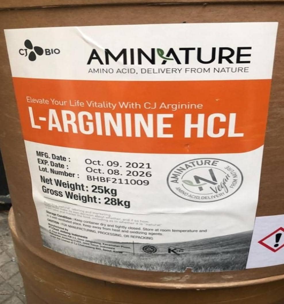 ال آرژنین هیدروکلراید HCl پودری در درام های 25 کیلویی به صورت خالص 99.9% عرضه می شود. جهت خرید ال آرژنین HCl با بازرگانی شیمی سنتر در تماس باشید