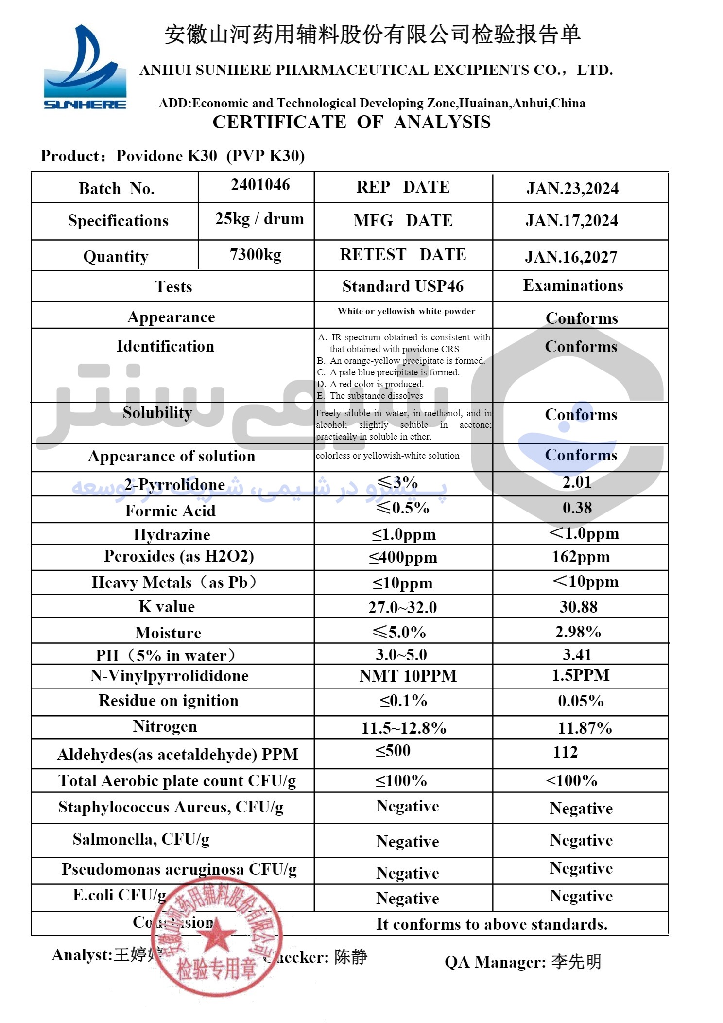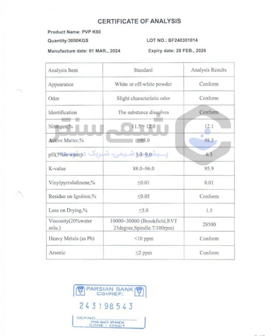 شرکت شیمی سنتر از برترین شرکت های واردکننده و فروشنده مواد اولیه شیمیایی است. شما می توانید خرید پلی وینیل پیرولیدون را با سایت شیمی سنتر تجربه کنید. ما به شما خریدارن محترم اطمینان می دهیم که این محصول را با ضمانت اصالت و کیفیت از ما دریافت می کنید. برای ثبت سفارش و استعلام از قیمت روز با مشاوران ما در واحد فروش در ارتباط باشید.