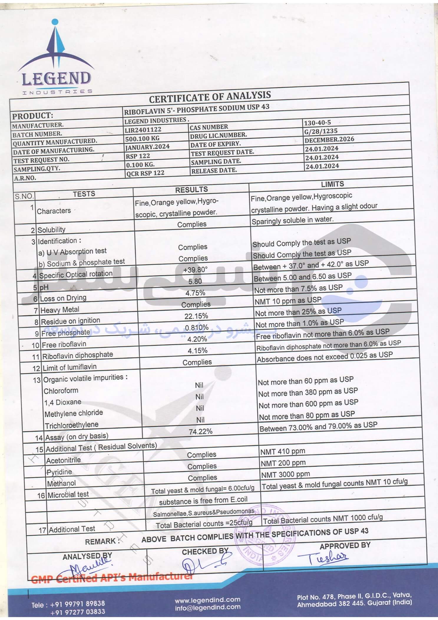 قیمت ریبوفلاوین 5 فسفات سدیم