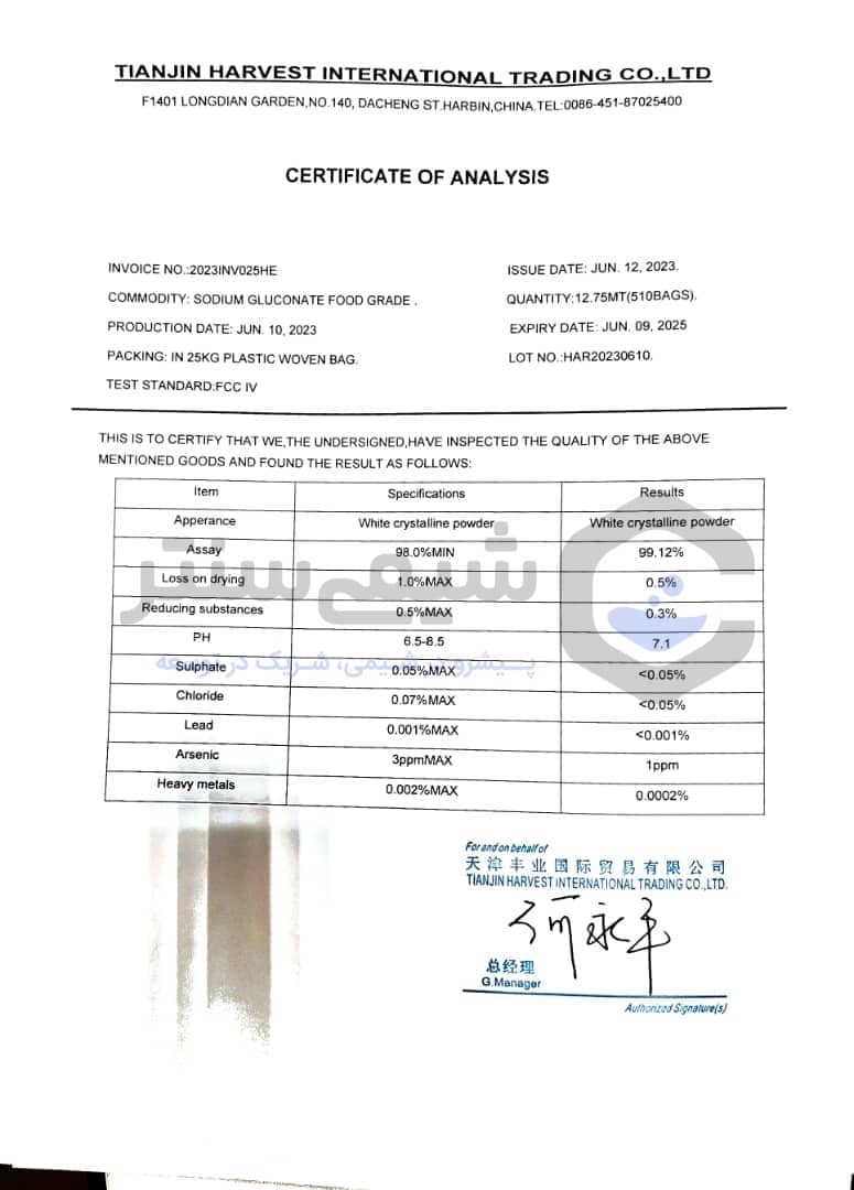 سدیم گلوکونات عرضهشده توسط ما دارای خلوص بالای ۹۸% است و تمامی محصولات همراه با برگه آنالیز و مشخصات فنی ارائه میشوند. برای دریافت اطلاعات دقیقتر، لطفاً با بخش پشتیبانی تماس بگیرید.