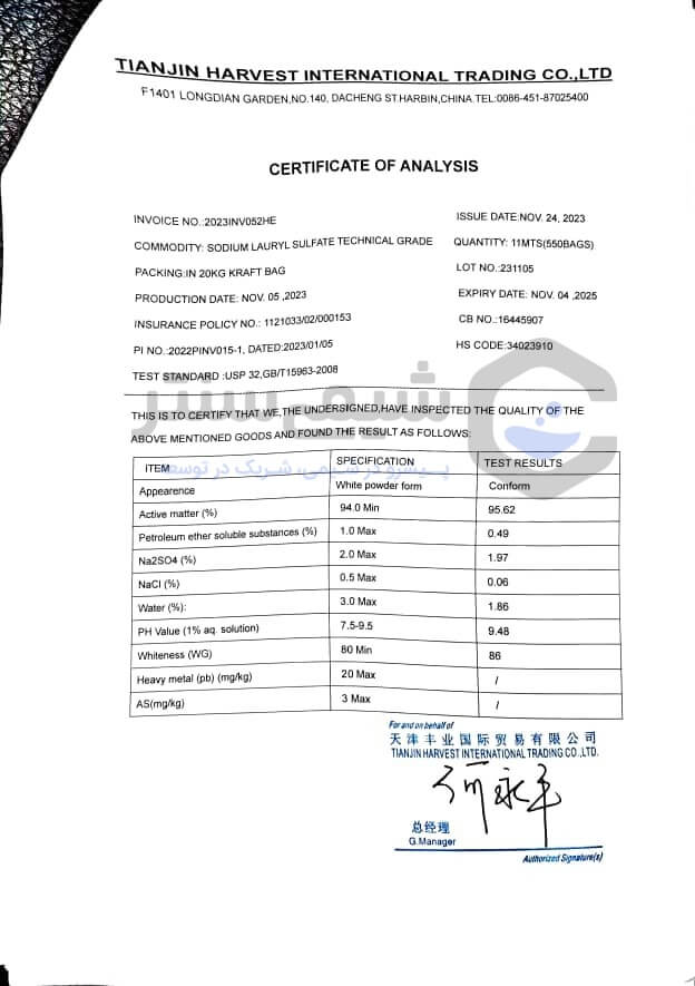 فروش سدیم لوریل سولفات (SLS) چینی | خرید sls کیسه 25 کیلویی