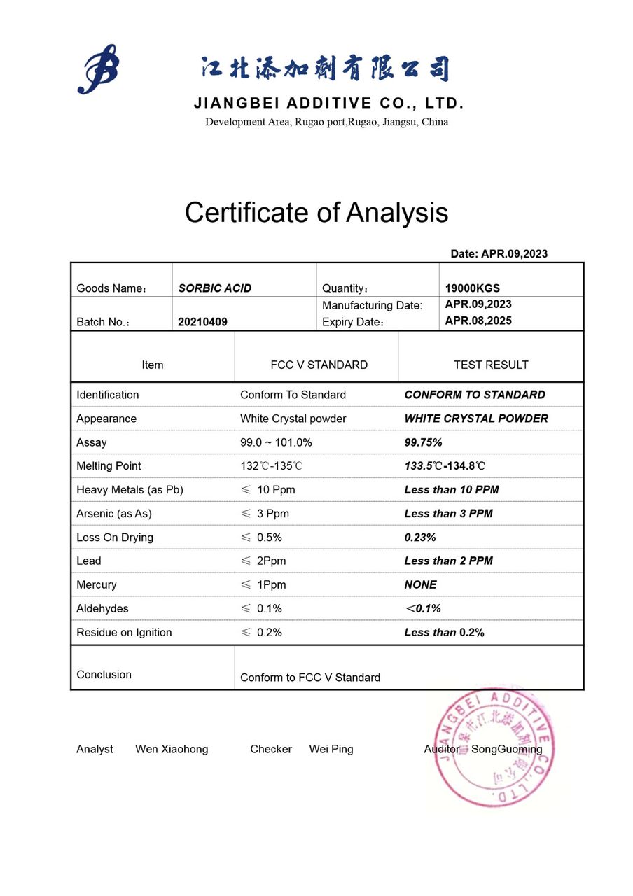 🟢طعم خنثی اسید سوربیک تقریباً بی طعم و بی بو است و بنابراین بر طعم و عطر محصول نهایی تاثیر منفی نمی گذارد.