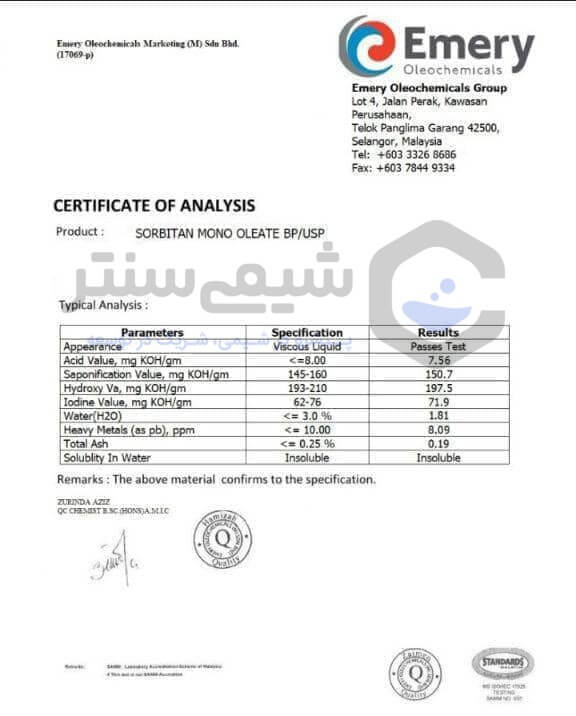 شیمی سنتر فروشگاه اینترنتی مواد شیمیایی فعال در حوزه ی خرید و قیمت مواد شیمیایی از جمله بهترین برندهای موجود در بازار با تضمین اصالت کالا می باشد. شما مشتریان عزیز می توانید جهت اطلاع در مورد سوربیتان مونو اولئات و ثبت سفارش با کارشناسان ما در واحد فروش در تماس باشید تا در کوتاه ترین زمان ممکن محصول خود را تحویل بگیرید. بازرگانی شیمی سنتر ارائه دهنده ی بهترین خدمات به شما خریداران محترم است. جهت استعلام از قیمت روز مواد شیمیایی با ما در ارتباط باشید.