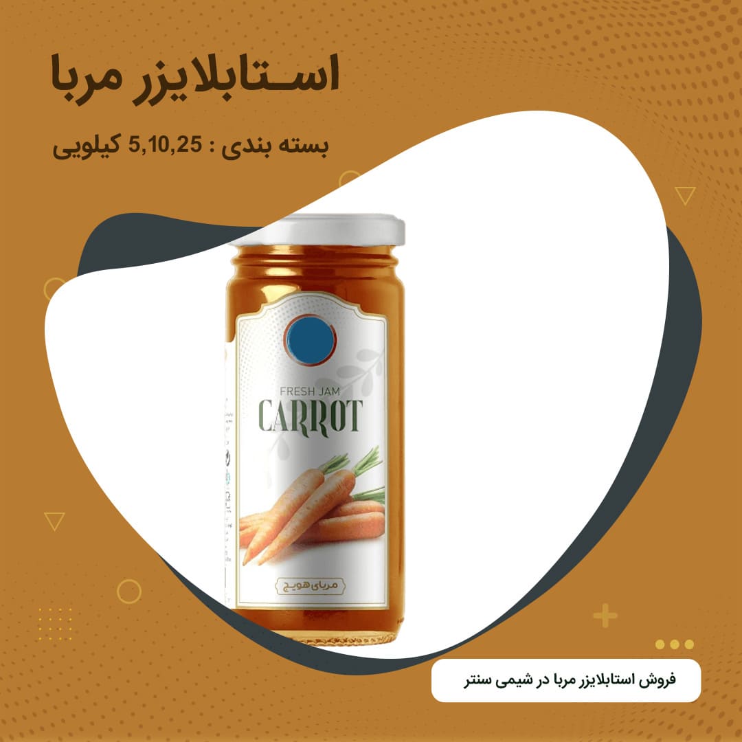 استابلایزر مربا یک محصول با کیفیت با برند و تولید کشور آلمانی است. این استابلایزر 100 درصد خالص بوده و برای بهبود بافت مربا ، جلوگیری از آب انداختن و شل شدن آن، و افزایش خاصیت کشدار شدن و رنگپذیری بهتر مربا استفاده میشود. این محصول به صورت عمده و جزئی و در بستههای 5، 10، و 25 کیلویی عرضه میشود.
