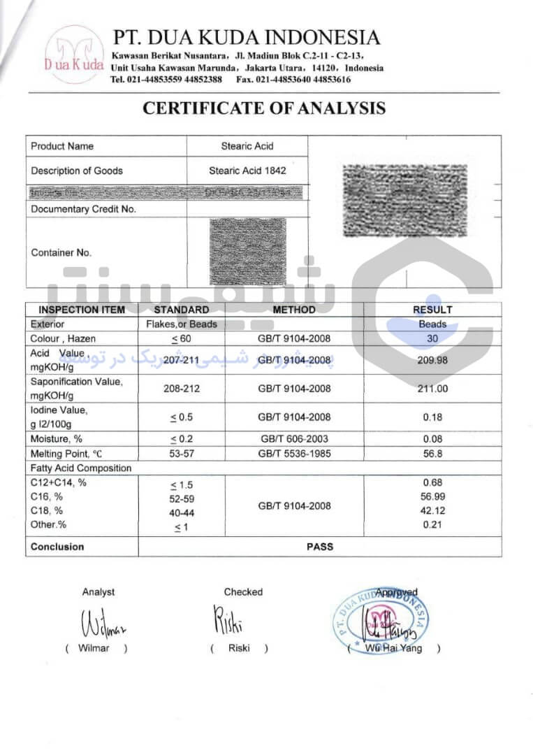 آنالیز استئاریک اسید