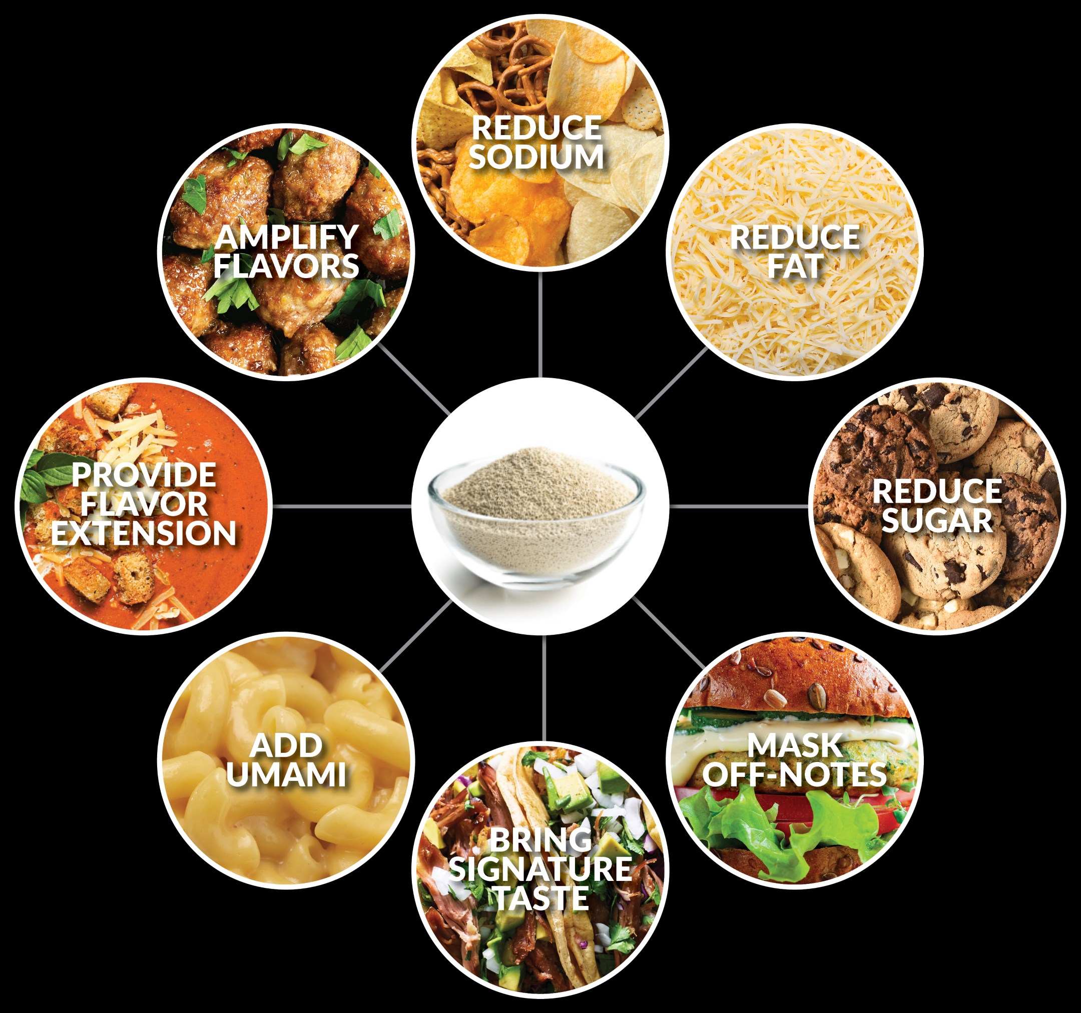 عصاره مخمر خوراکی، برای طعم امامیای که دارد مورد توجه است، که میتواند طعم انواع محصولات غذایی را بدون افزودن طعم دهنده های مصنوعی یا مونو سدیم گلوتامات (MSG) بهبود ببخشد. بهطور معمول در سوپها، تنقلات، سسها، غذاهای آماده و محصولات گوشتی یافت میشود که به طعم امامی آنها کمک میکند و همزمان منافع تغذیهای را نیز فراهم میآورد.